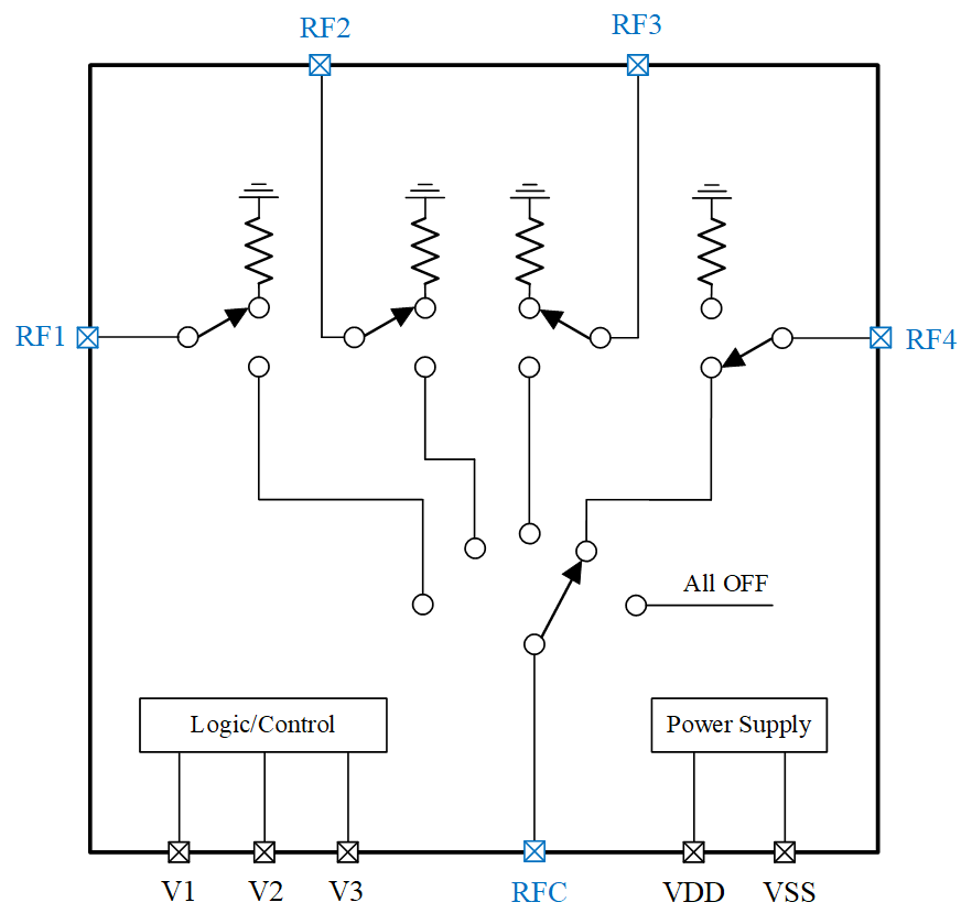 ARW3433是一款高隔離度的吸收式SP4T射頻開關芯片,工作頻率覆蓋0.1~8GHz,隔離度在8GHz達到了65dB,該芯片使用了FC-LGA封裝工藝,芯片封裝尺寸為4.2mm×4.2mm,特別適用于Sub-8GHz通信基站,天線,射頻拉遠單元,小基站,測試儀器,開關矩陣,數字預失真反饋通道等對隔離度和線性度要求極高的應用場景。